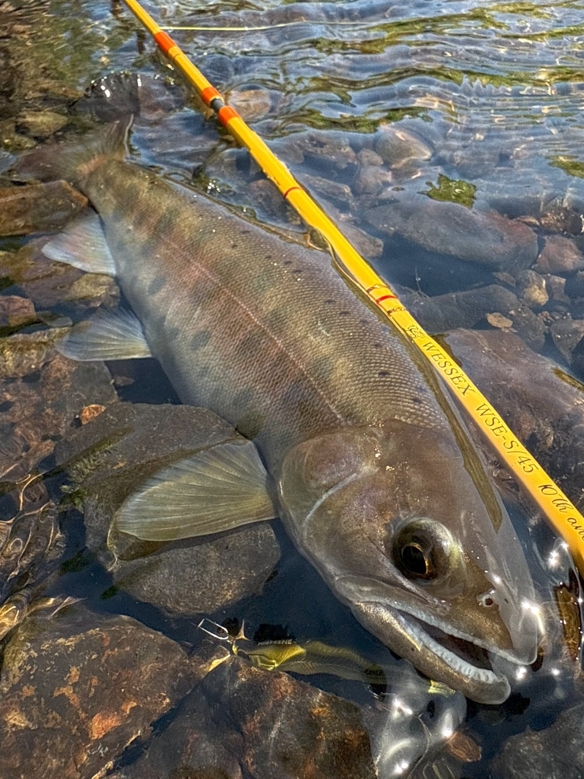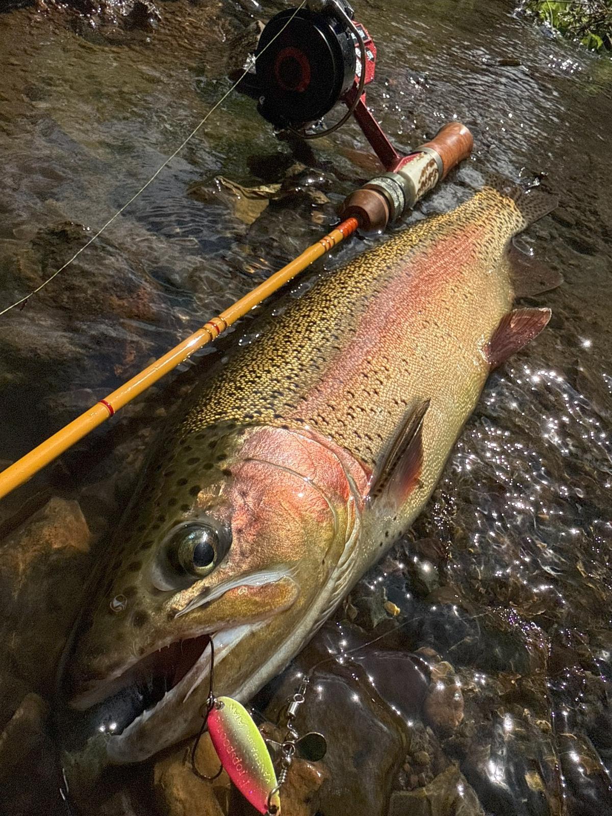 ショートグリップの取り回しの良さはそのままに、4フィートモデルよりもティップの粘り強さが出ていて、大型の トラウトとのファイトに安心感がプラスされました。