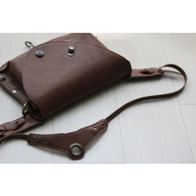 付属品で丸カラビナを4個お付けしますのでラニヤードのようにラインクリッパーなどの小物を取り付けていただけますので、頻繁に使用するものは大体がポーチに収納出来ます。 頻繁に使用しない物(予備のルアーやカメラ、雨具、飲み物、食料)などは肩がフリーなのでリュックに収納して背負いやすいです。 写真の革はオイルドヌバックレザーですが、ナチュラルヌメ希望の場合は備考欄に記入ください。