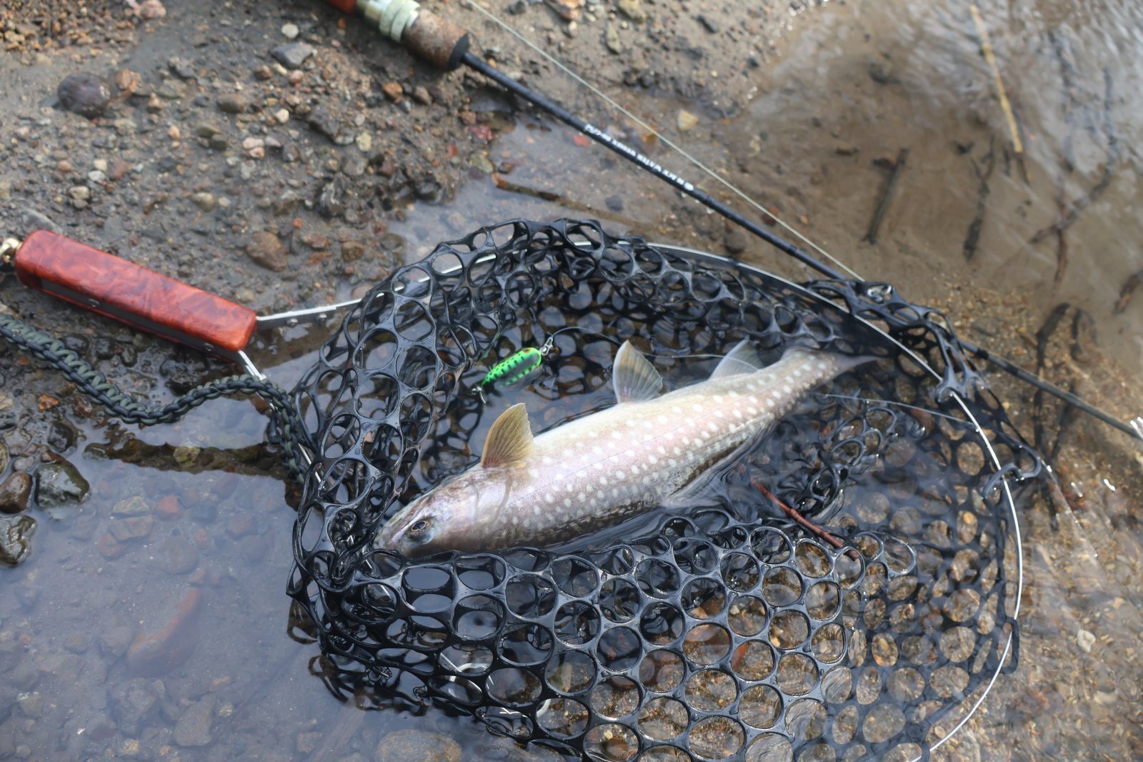 冬季マス釣り場(50cm程度までのニジマス)にも何とか使えるくらいの大きさです。