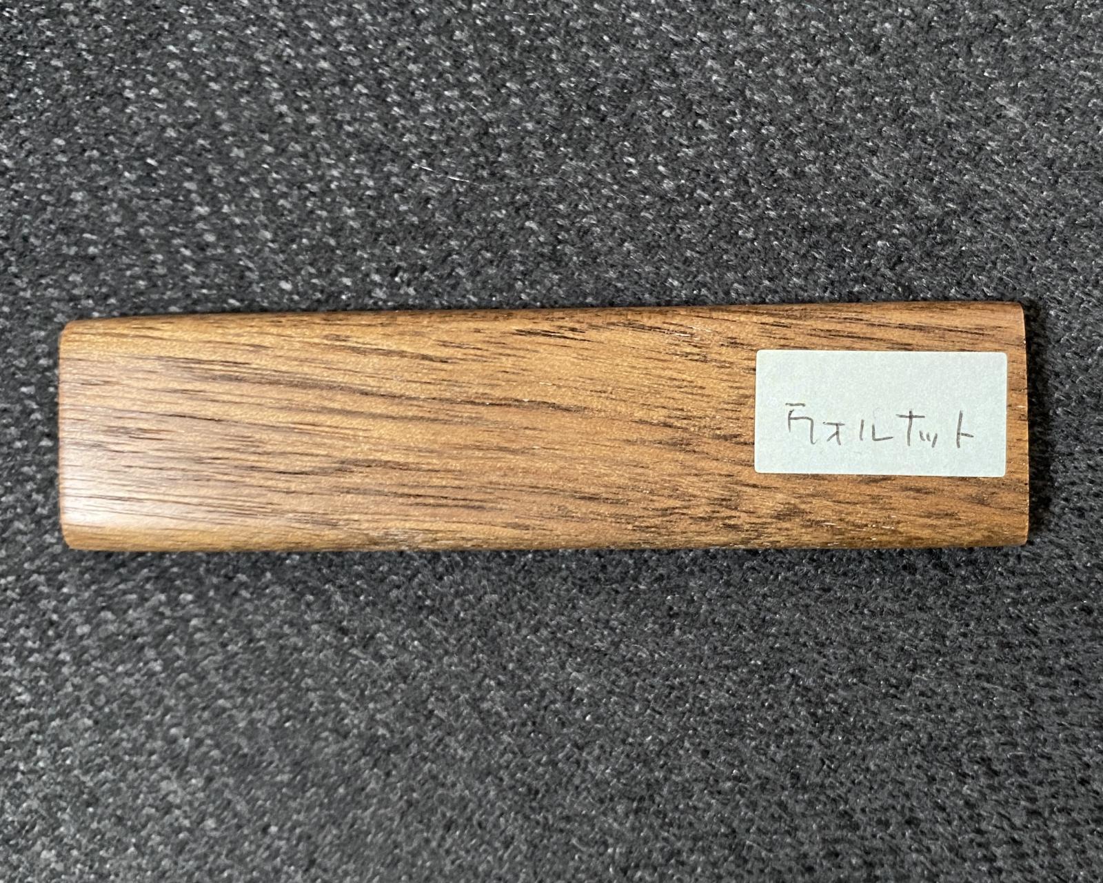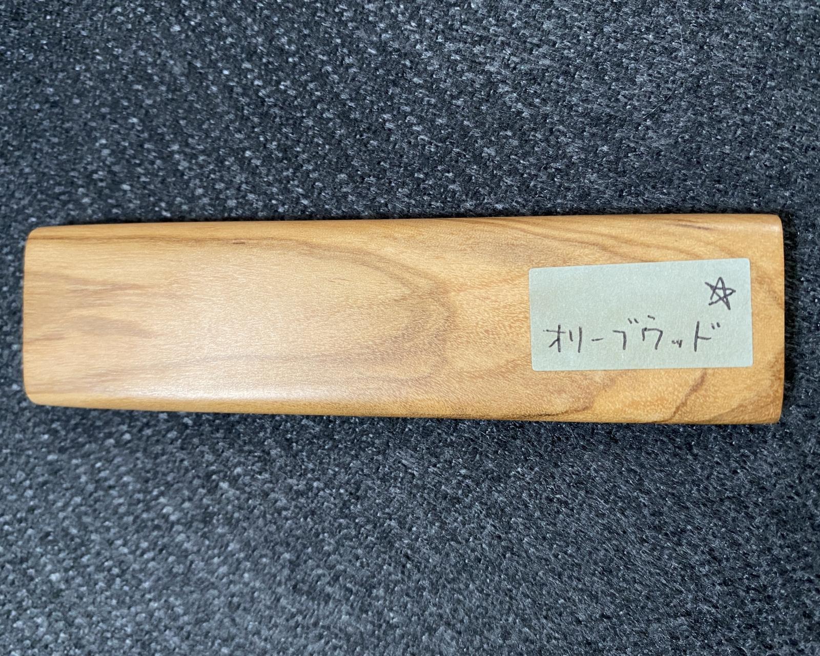 ウッドハンドルパーツはオリーブウッド、ウォルナットのスタビライズドウッド、メープルスタビライズドウッドの各色と花梨のスタビライズドウッド。