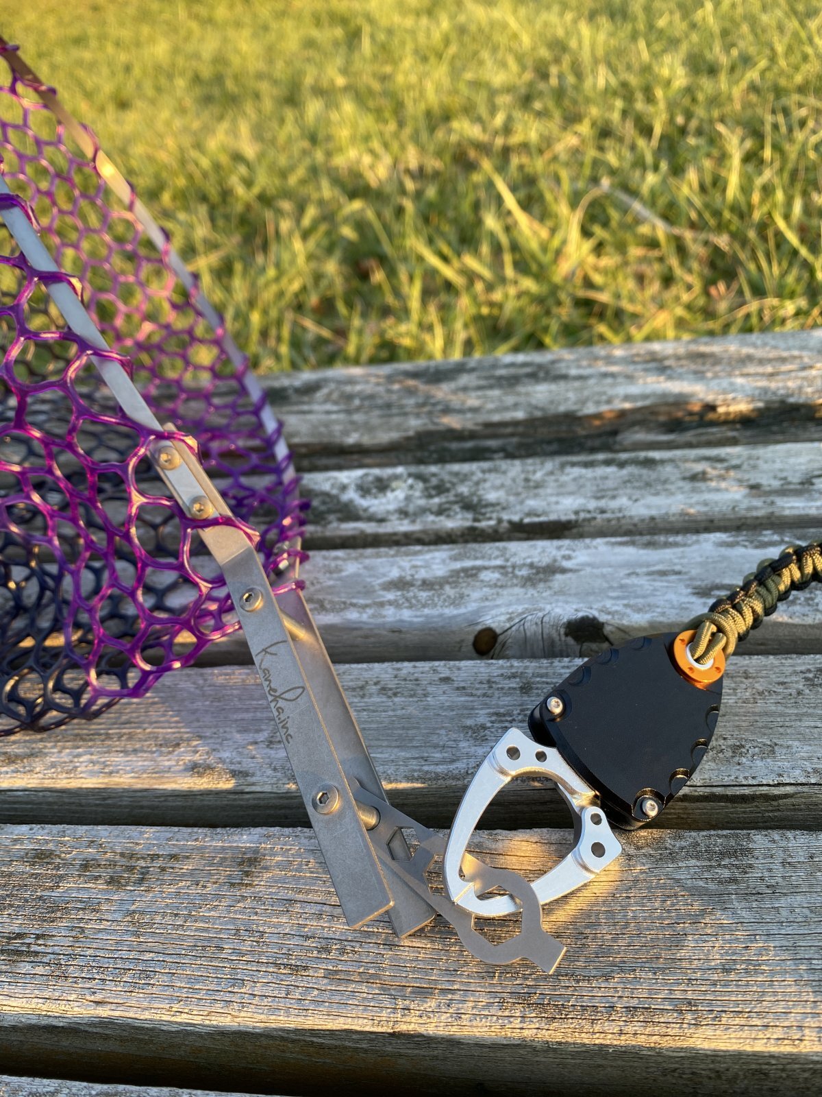 フィッシングベルトやバッグやベストについているDカンに挟んだりするほか、釣れた魚を写真撮影する準備が済むまでの間の一時的な保持用具としてなど、ミニグリップのジョーはフィッシュグリップやボガグリップと同様、両方開閉するかけはり式で外れにくいので色々なものに対して挟んでつなぐことが可能です。