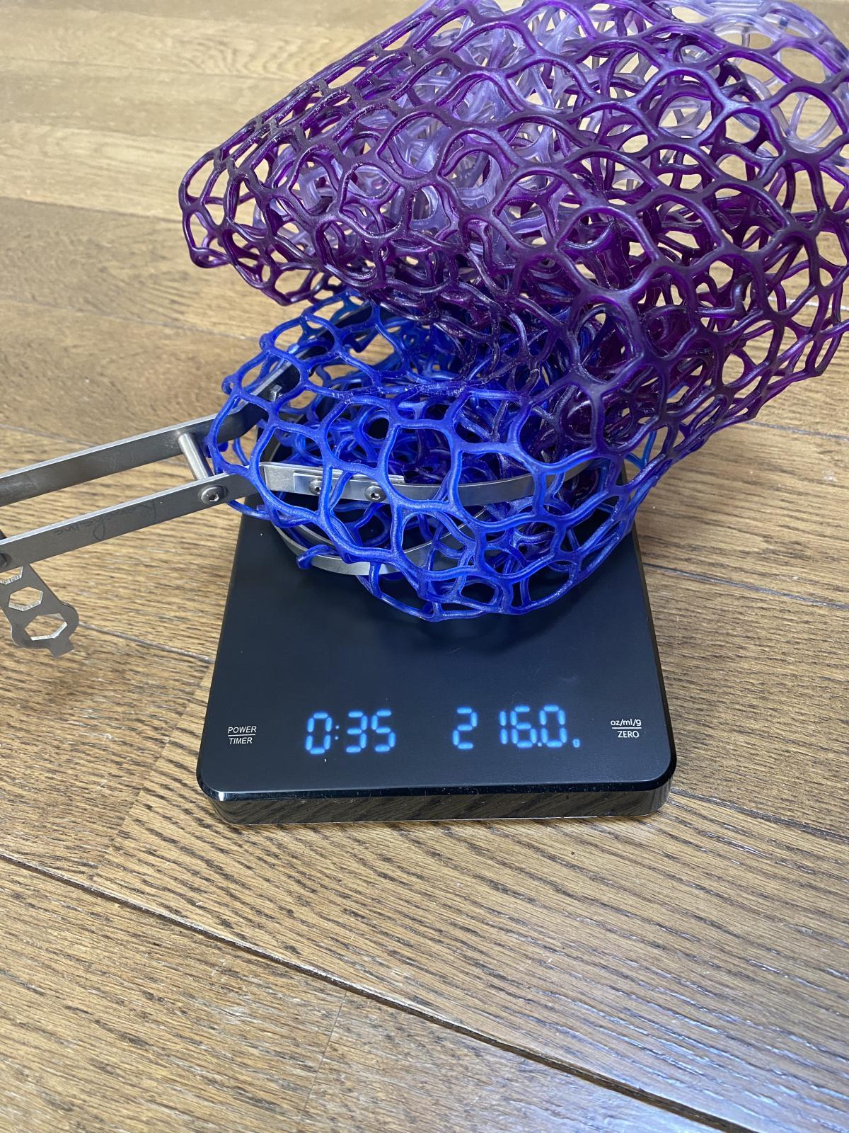 ↑12インチワイドタイプラバーのセット重量216gと、ラバーネットをセットした状態でも超軽量ULフィッシングツールといえます。